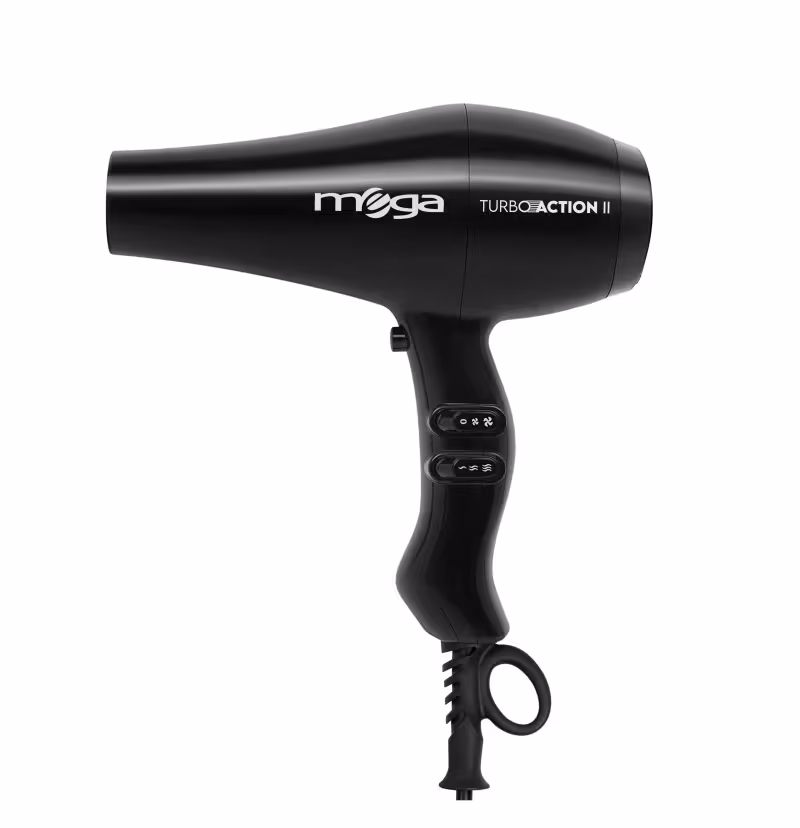 Secador profissional com voltagem bivolt. Mega Turbo Action II 2000W proporciona um resultado incrível e deslumbrante.