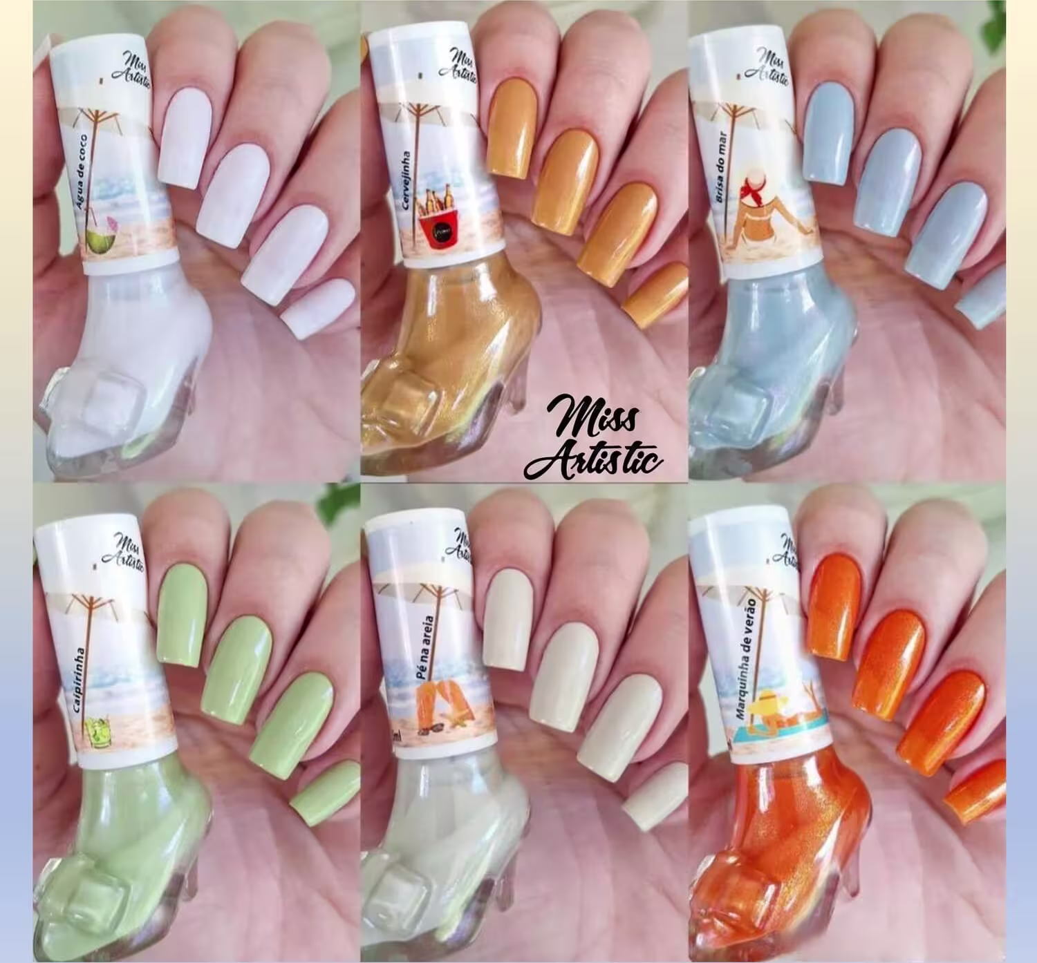 A Miss Artistic é uma marca de esmaltes inovadora, recentemente introduzida no mercado de beleza. Com uma abordagem moderna e criativa, Miss Artistic busca oferecer uma ampla diversidade de cores vibrantes e duradouras para os entusiastas da manicure/pedicure. Os produtos são conhecidos por sua qualidade superior, fórmulas de secagem rápida e acabamento profissional. Com um foco na expressão artística e na individualidade, Miss Artistic promete inspirar a criatividade e elevar o estilo pessoal de seus consumidores. A marca apresenta uma linha de tratamento para unhas e cutículas, além da linda coleção de sapatinhos que são encantadores e colecionáveis e ainda com lindos esmaltes glitter efeito holográfico em sua coleção dos lacinhos.