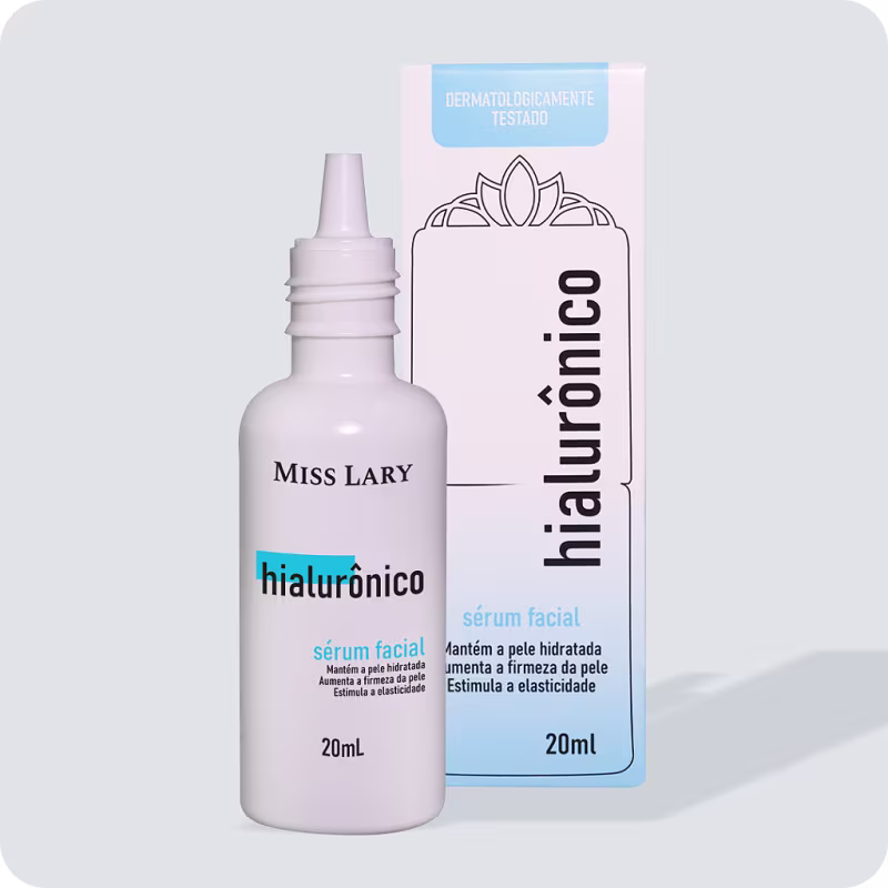 O Sérum Facial Miss Lary Ácido Hialurônico possui uma combinação exclusiva de Ácido Hialurônico e Extrato de Chá Branco para uma potente ação hidratante, antioxidante e estimulante. Sua fórmula é leve, de rápida absorção e forma uma película protetora, que aumenta a firmeza da pele, preservando a elasticidade, dando uma sensação imediata de pele mais macia e uma aparência mais jovem com efeito iluminado.