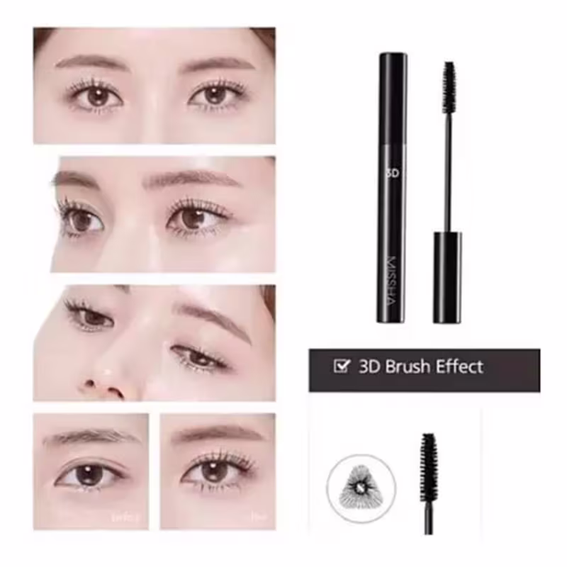 A Máscara de Cílios Missha 3D conta com escova multi-corte em formato triangular que alcança até os fios mais curtos, proporcionando volume intenso, alongamento e definição. Enriquecida com cera vegetal, desliza suavemente sem empelotar, mantendo os cílios macios e separados. Seu revestimento resistente à água garante fixação prolongada, sem borrar ou desbotar ao longo do dia.