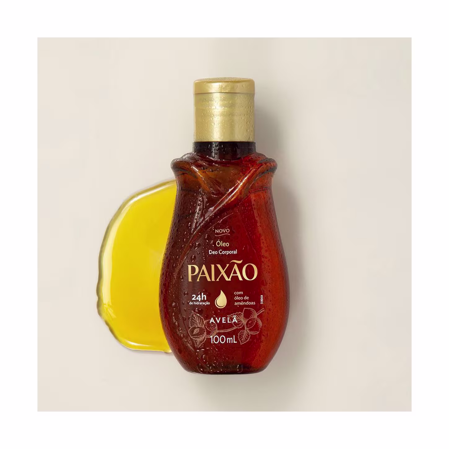 Óleo corporal para todos os tipos de pele. Monange Paixão Amêndoa Com Avelã possui ação desodorante, que hidrata e perfuma suavemente a pele.
