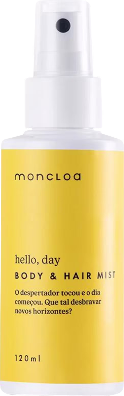 Mist corporal e capilar para uso diurno. Moncloa Hello, Day proporciona uma fragrância refrescante e energizante.