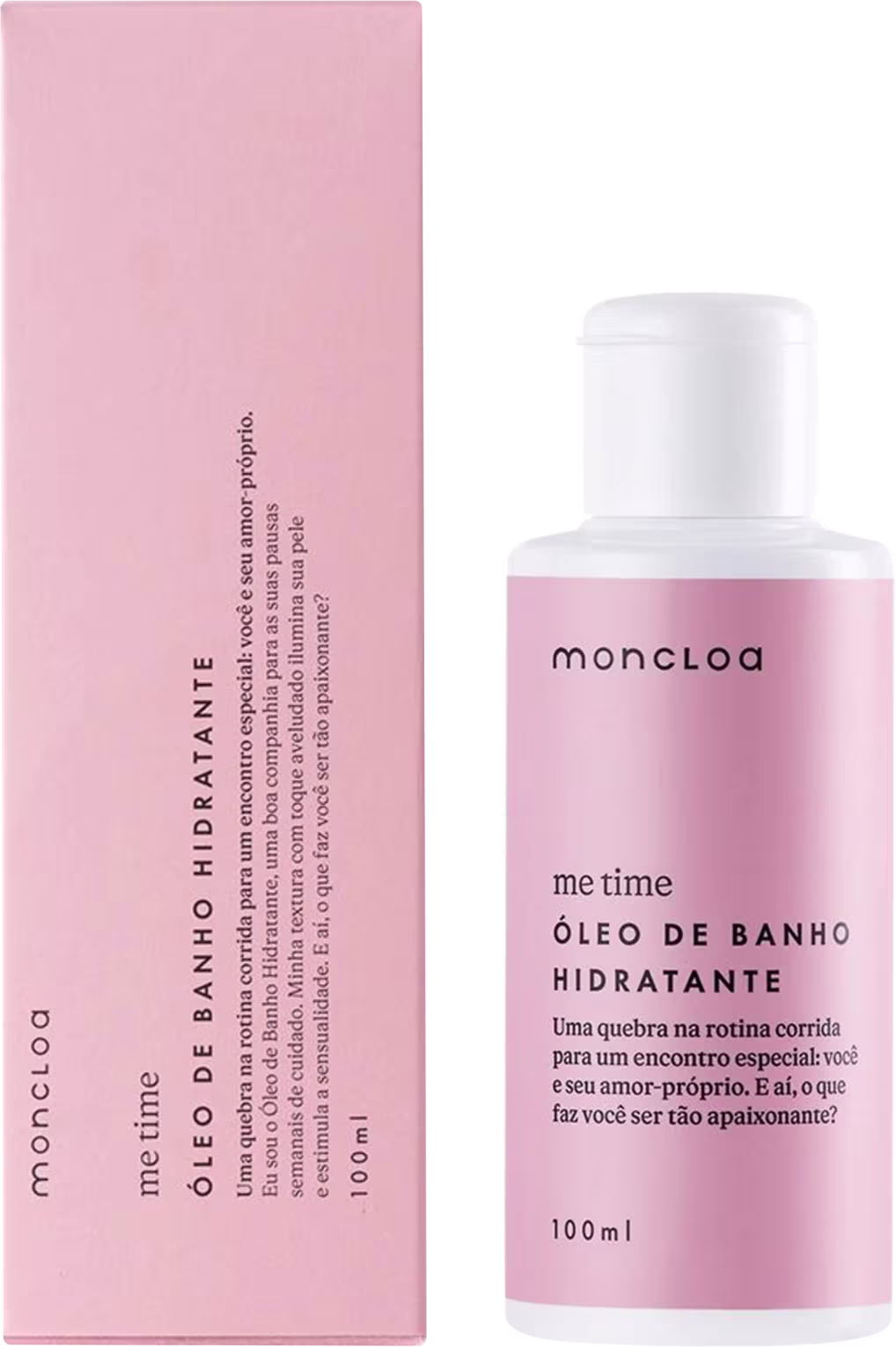 O Óleo de Banho Hidratante Moncloa Me Time conta com fragrância única e terapêutica, que estimula a autoestima e o autocuidado. Além disso, quando entra em contato com a água, ganha a forma de um leite hidratante, com sensorial aveludado e macio.