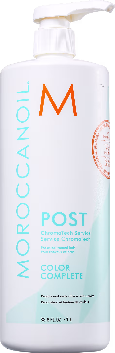 Moroccanoil Color Complete ChromaTech Post funciona age através de uma tecnologia exclusiva que penetra nos fios e garante que a coloração que acabou de ser realizada fique no fio. Além disso, mantém a saúde, maciez e força do cabelo por muito mais tempo.