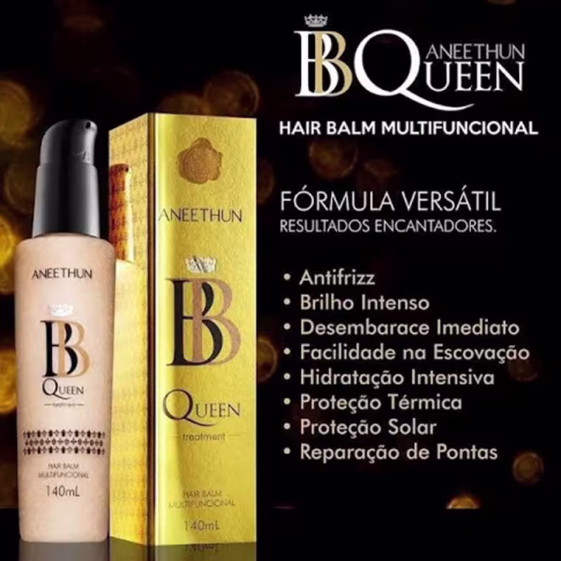 Proporciona multibenefícios. Aneethun bb Queen Hair Balm Multifuncional é anti-frizz e oferece um Brilho intenso desembarace imediato hidratação intensiva facilidade na escovação proteção térmica, proteção solar reparação de pontas.