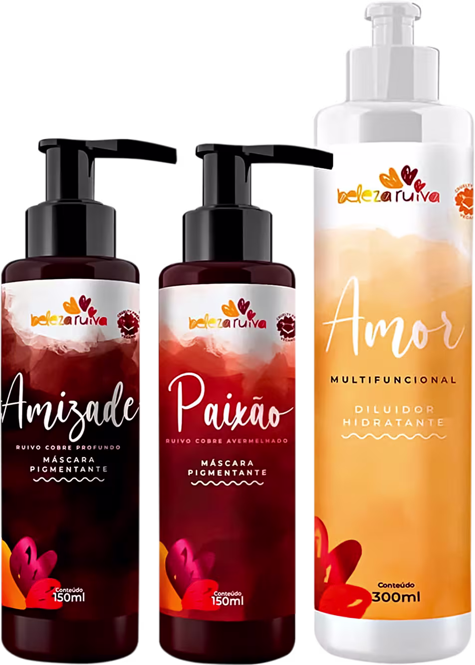 Kit Beleza Ruiva Tonalizante Amizade, Paixão e Diluidor Amor - 500ml