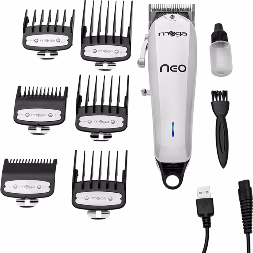 Mega Máquina de Corte Cabelo NEO Cordless a Bateria Recarregavel Chrome USB