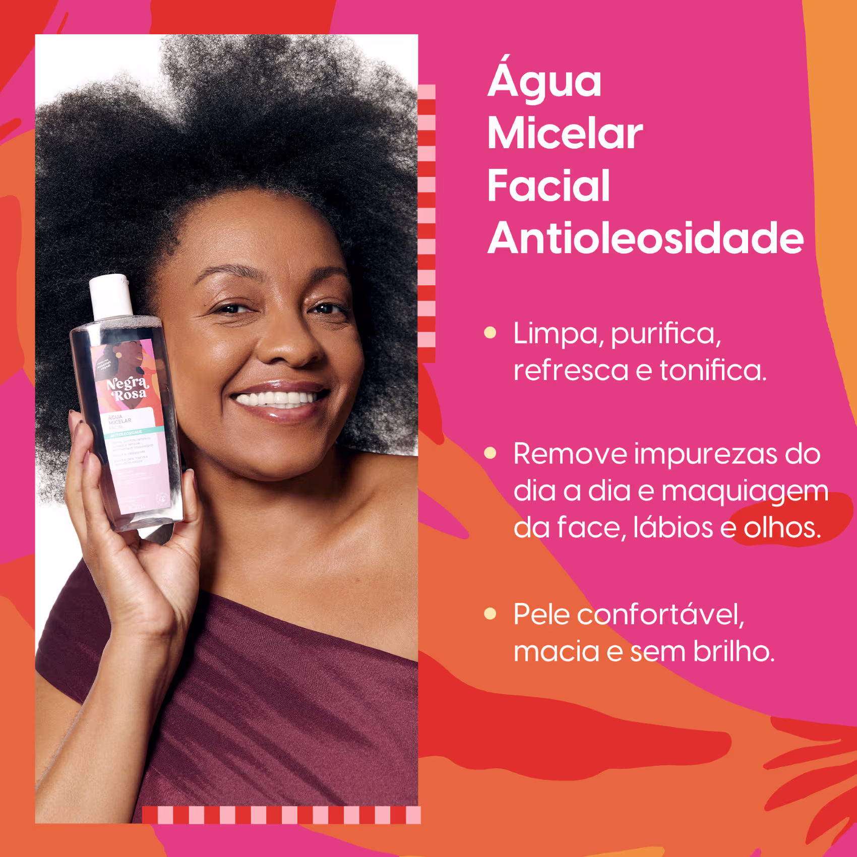 Água Micelar Facial Antioleosidade Negra Rosa 200ml