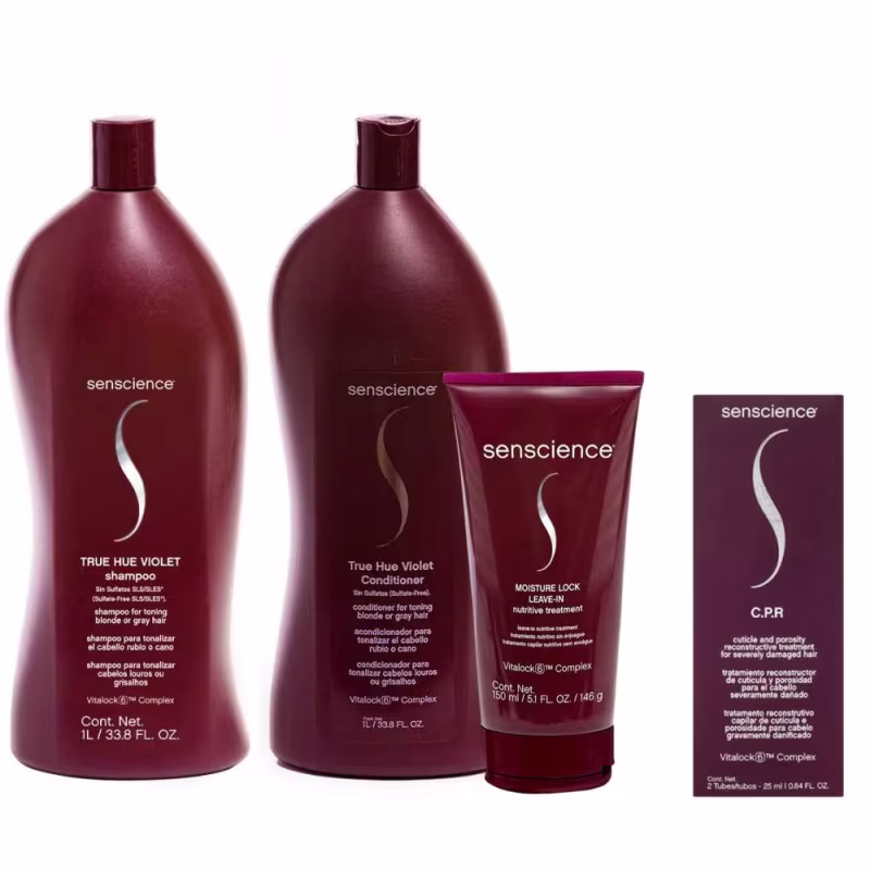 Senscience True Hue Violet Shampoo + Condicionador 1L + Moisture Lock + C.P.R 25ml