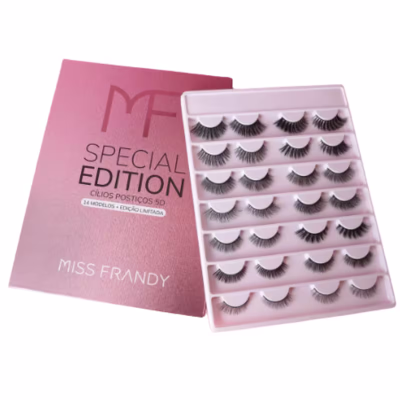 Cílios Postiços 5D Com 14 Pares Edição Limitada Miss Frandy foram desenvolvidos exclusivamente pensado para ajudar a alcançar um resultado perfeito na make, garantindo praticidade e conforto. Além de realçar o olhar os cílios se misturam com os cílios naturais, garantindo um resultado natural.