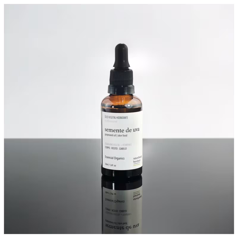 elasticidade da pele e dos cabelos, através da ação hidratante. É excelente para atuar como óleo carreador, servindo para diluir óleos essenciais. Produzido com sementes de uva cultivadas sem o uso de agrotóxicos.