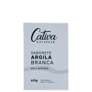 Indicado para peles normais, o Sabonete de Argila Branca Cativa Natureza limpa sem agredir e mantém o equilíbrio do pH da pele normal. Dentre todas as argilas que podemos encontrar, a branca está entre as mais leves, já que tem pH próximo ao da nossa pele e maior percentual de alumínio. Sua ação revitaliza e renova a pele, ajuda a clarear manchas, suaviza e cicatriza a pele, além de contribuir na redução de inflamações. Produz uma leve esfoliação, removendo a oleosidade sem desidratar a pele além de absorver toxinas e impurezas.
