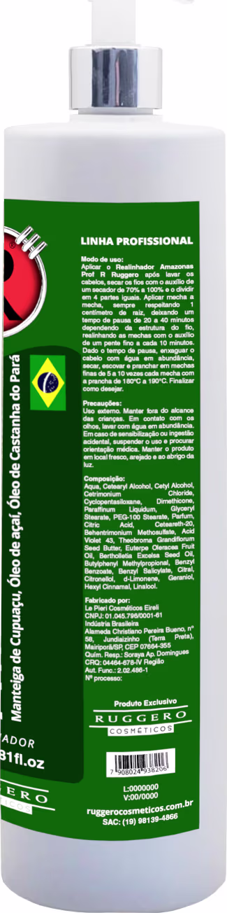 A Semi Definitiva Amazonas Ruggero, desenvolvida a partir de ativos biotecnológicos. Proporciona realinhamento do fio, com sua formula exclusiva com pigmentação roxa e pH de 3,0 a 3,5, ativos nobres, Queratina, Extrato de Açaí, Castanha do Pará e Cupuaçu; promove a redução do volume com maior durabilidade e hidratação intensa.
