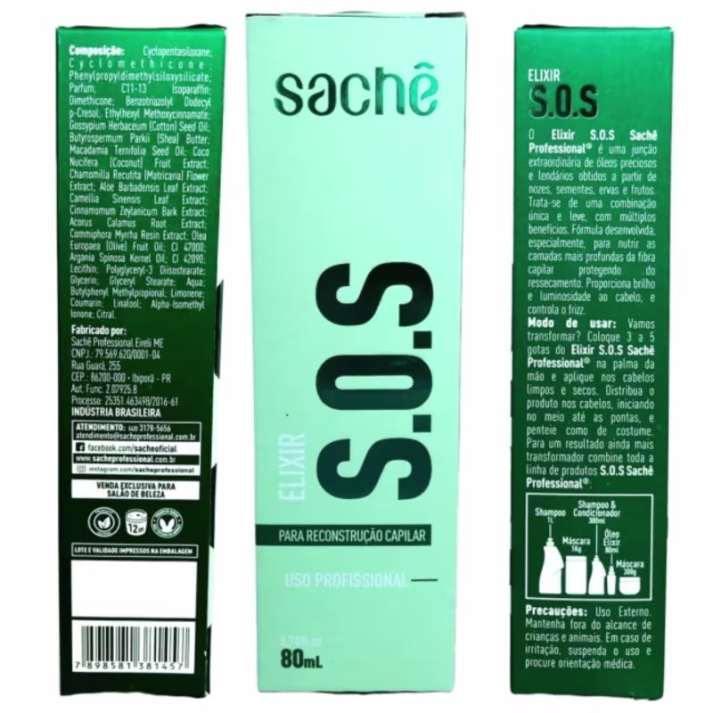 Conselho de Aplicação Vamos transformar? Coloque 3 a 5 gotas doElixir S.O.S Sachê Professionalna palma da mão e aplique nos cabelos limpos e secos, distribua o produto nos cabelos, iniciando no meio até as pontas, e penteie como de costume. Para um resultado ainda mais transformador combine toda a linha de produtosS.O.S Sachê Professional.