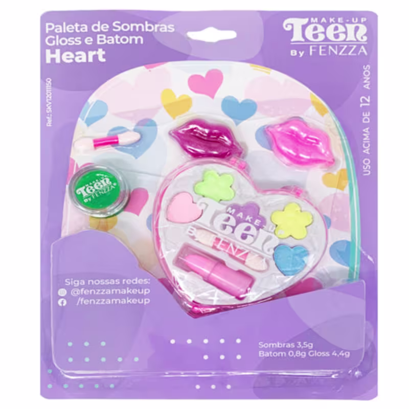 A coleção Paleta de Sombras, Gloss e Batom Heart Teen Fenzza SKV12011150 captura a essência jovem e ousada da maquiagem contemporânea. Combinando sombras vibrantes, gloss brilhante e um batom elegante, essa coleção é perfeita para expressões criativas e autênticas.