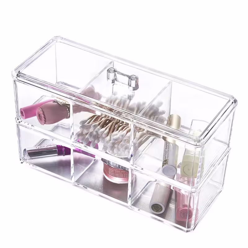 Não sei o CEPEste conjunto combina duas peças com divisórias internas que somam 6 divisórias no total, para melhorar o que já era perfeito. Este organizador torna-se aliado a organização de diversos ambientes, podendo ser utilizado para separar pequenos objetos. A peça possui tampa e é fabricada em acrílico transparente de alta qualidade.