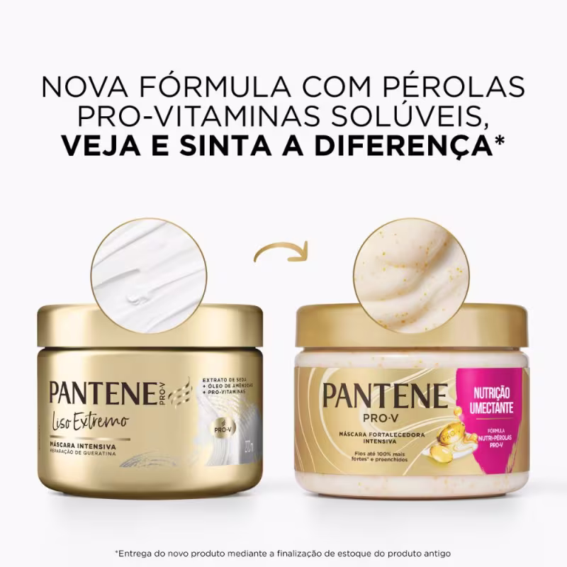 Nutrição Precisa de uma solução para cabelos com frizz e pontas duplas? A Máscara Capilar Nutrição Pantene é para você! Complete o seu cronograma capilar com a nova máscara de nutrição Pantene. A nova fórmula Nutri-Pérolas Pro-V é uma infusão reparadora contra o dano*; contém Pérolas Pro-Vitaminas solúveis e Óleo de Amêndoas, para fios até 100% mais fortes** e preenchidos. As Pérolas Pro-V são partículas que liberam milhões de lipídios que se dissolvem no creme, uma tecnologia exclusiva Pantene. Sinta a diferença. *Dano ao brilho e a suavidade.**vs shampoo sem ingredientes condicionadores depois de 4 usos. SHORT DESCRIPTION:Precisa de uma solução para cabelos com frizz e pontas duplas? A Máscara Capilar Nutrição Pantene é para você! Complete o seu cronograma capilar com a nova máscara de nutrição Pantene. A nova fórmula Nutri-Pérolas Pro-V é uma infusão reparadora contra o dano*; contém Pérolas Pro-Vitaminas solúveis e Óleo de Amêndoas, para fios até 100% mais fortes** e preenchidos. *Dano ao brilho e a suavidade.**vs shampoo sem ingredientes condicionadores depois de 4 usos.