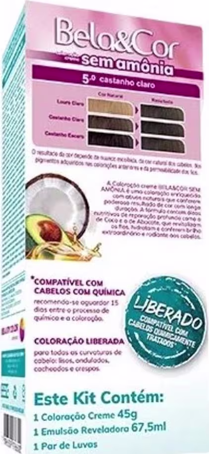 Não sei o CEPBeautyColor Kit Bela&Cor Tinta Sem Amônia Castanho Claro 5.0