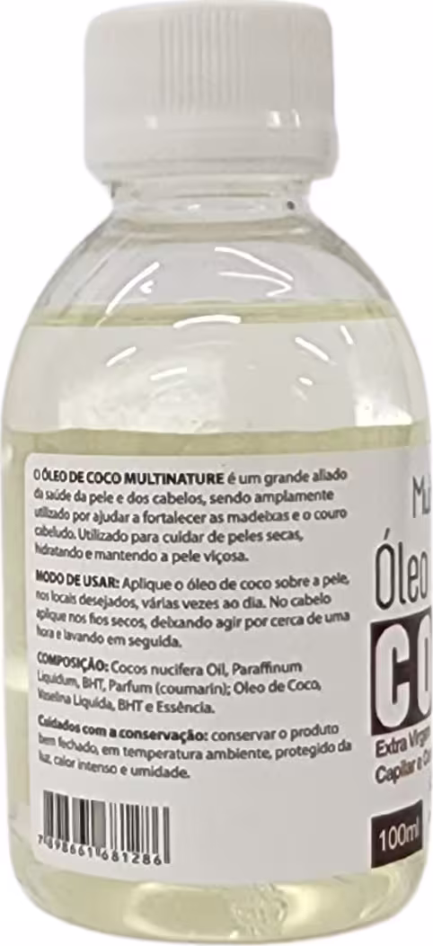 Finalidade: O ÓLEO DE COCO MULTINATURE é um grande aliado da saúde da pele e do cabelos, sendo amplamente utilizado por ajudar a fortalecer as madeixas e o couro cabeludo. Utilizado para cuidar de peles secas, hidratando e mantendo a pele viçosa.