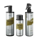 Blond Condicionador 250ml: - pH 4.5-5.5 contém pigmento que matiza os tons amarelados e grisalhos. Fórmula enriquecida com óleos e manteigas que irão contribuir com a maciez, nutrição e hidratação prolongada. MODO DE USAR Distribuir nos cabelos úmidos, principalmente onde há excesso de tons amarelos/dourados. Deixar agir 1 minuto e enxaguar bem. Atenção: Cuidado com o tempo de pausa a fim de evitar a super pigmentação dos fios.