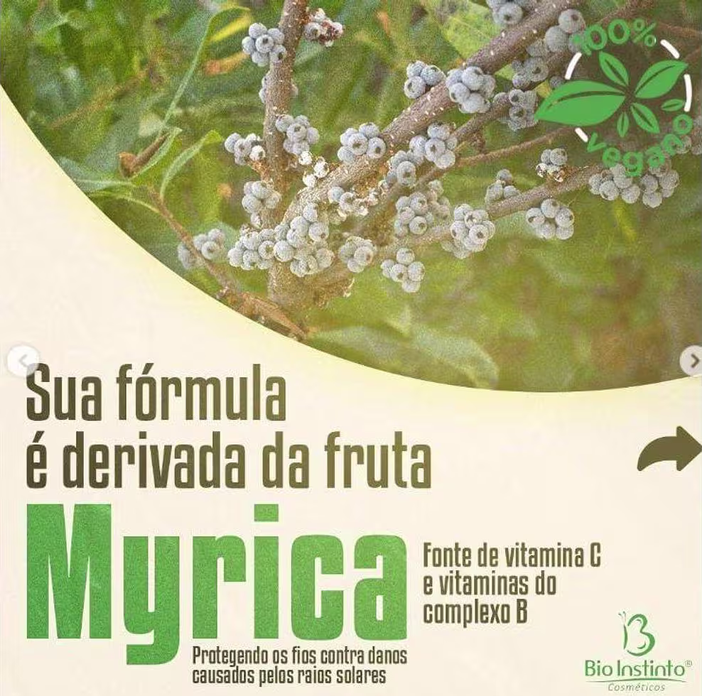 O Kit Vegan Cera Vegana possui em sua composição Cera 100% Vegana, derivada da fruta Myrica, que é fonte de vitamina C e vitaminas do complexo B, que protegem os fios contra danos causados petos raios solares.