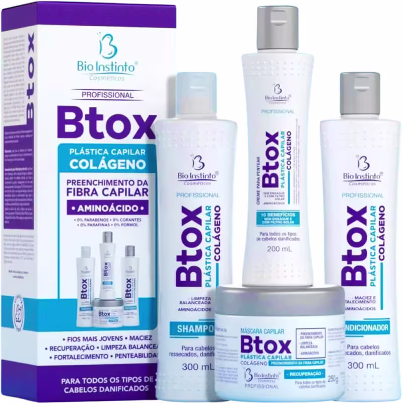 Bio Instinto Btox Plástica Capilar - Kit Colágeno Capilar Cabelos Danificados (4 Produtos)