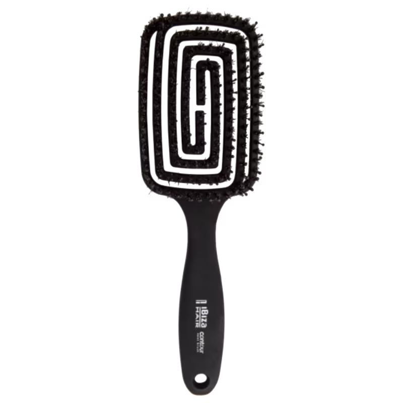 A Nova Escova Contour Vent by Ibiza é uma combinação de cerdas de Javali que dá brilho e com Nylon com ponta esférica para estimular o couro cabeludo. O design geométrico se adapta ao formato da cabeça para uma escova e desembaraço sem danos.