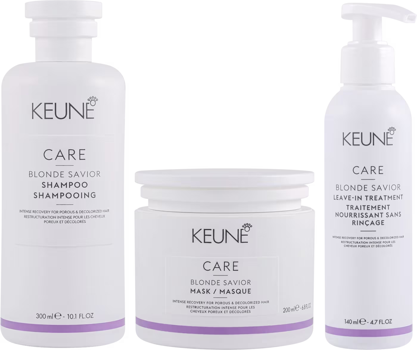 Não sei o CEPKit com shampoo, máscara e leave-in para cabelos danificados e descoloridos. Keune Care Blonde Savior Trio força e reparação imediata dos fios