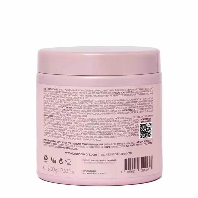 Já o Condicionador Braé Glow Shine é responsável por desembaraçar e condicionar os cabelos, deixando-os macios e sedosos. Sua fórmula contém os mesmos ativos presentes no shampoo, proporcionando um cuidado completo aos fios.