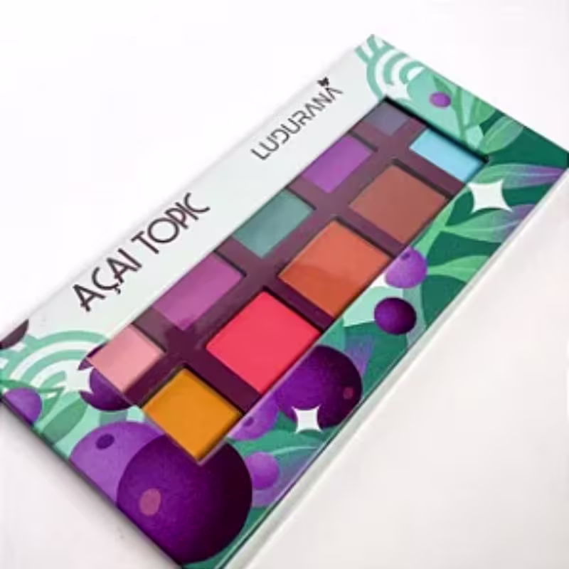 - 10 cores lindas e intensas: a paleta contém 10 sombras inspiradas no fruto açaí, com tons vibrantes e neutros para criar diferentes looks.