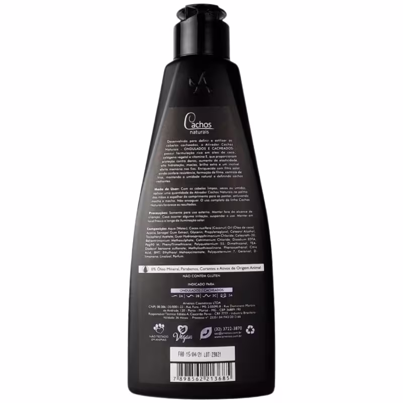 O Ativador de Cachos Cacheados e Ondulados foi especialmente desenvolvido para definir e estilizar os cabelos ondulados e cacheados. Elaborado através da perfeita combinação de Óleo de Coco, Colágeno Vegetal e Vitamina E, o Ativador Cachos Naturais proporciona inúmeros benefícios como nutrição avançada, reparação dos fios danificados, aumento da elasticidade, alta hidratação, maciez, brilho extra e um incrível efeito memória nos fios. Sua ação protetora - enriquecida com filtro solar - ainda confere resistência, formação de filme e controle de frizz, além de manter a umidade natural para cachos nutridos e radiantes.