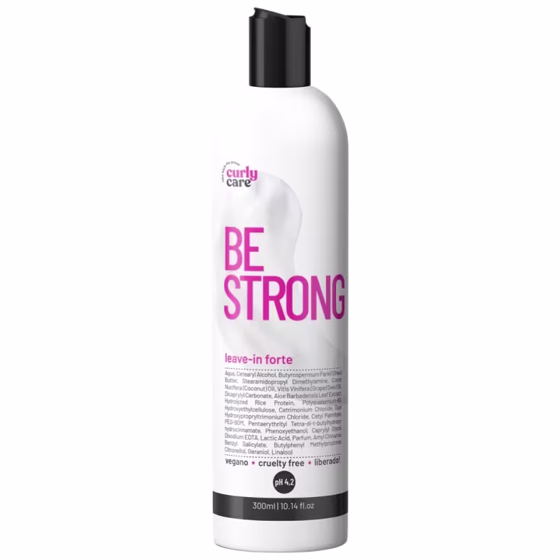 O Leave-in Forte CurlyCare Be Strong conta com uma fórmula rica em óleos, que suaviza as cutículas e diminui o frizz. Proporciona uma aparência saudável e brilhosa aos fios.