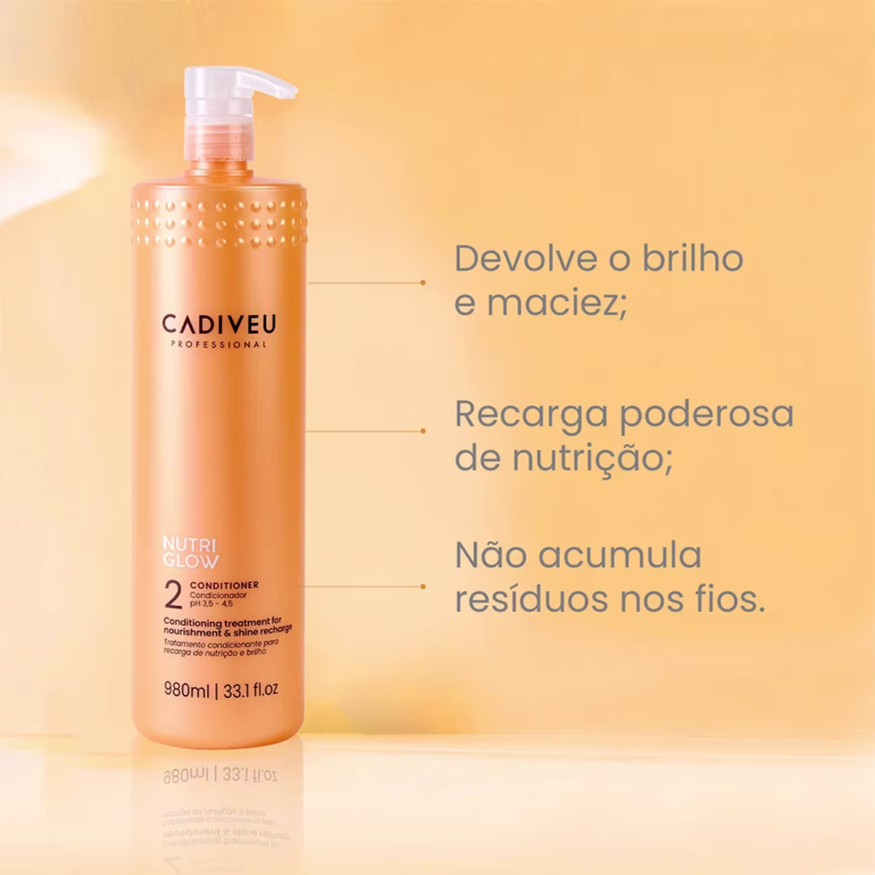 Cadiveu Professional Nutri Glow - Condicionador 980ml: para cabelos secos, ressecados e sem vida, sejam eles lisos, alisados, ondulados, cacheados ou crespos. Que desejem um resultado de nutrição e brilho intenso, maciez, maleabilidade, movimento, toque de seda e redução de frizz.