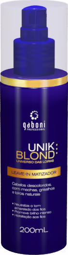 Gaboni Unik Blond Leave-in Matizador desenvolvido especialmente para neutralizar o tom amarelado dos cabelos loiros naturais e descoloridos. Ver mais ❯