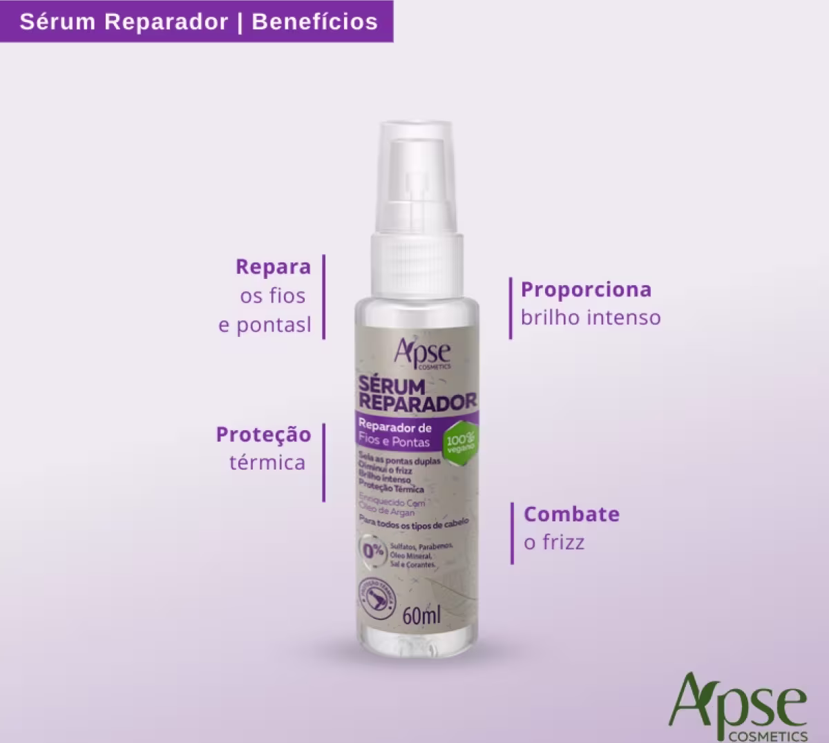 Reparador de fios e pontas. Apse Cosmetics Sérum Reparador realiza a selagem das cutículas e garante um brilho incrível para os fios.
