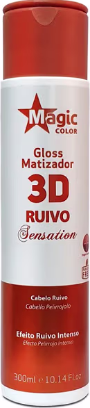 O Matizador 3D Ruivo Sensation Neutraliza os tons oxidados adquiridos com passar do tempo. Possui efeito gloss proporcionado por glitters pigmentados e o composto 3D coacervado antirrotura que fornece os aminoácidos essenciais (cisteína, lisina, glicina, arginina e tirosina), oferecendo crescimento, reestruturação, fortalecimento, resistência e nutrição dos fios, além de queratina. Seu efeito é gradual e progressivo.
