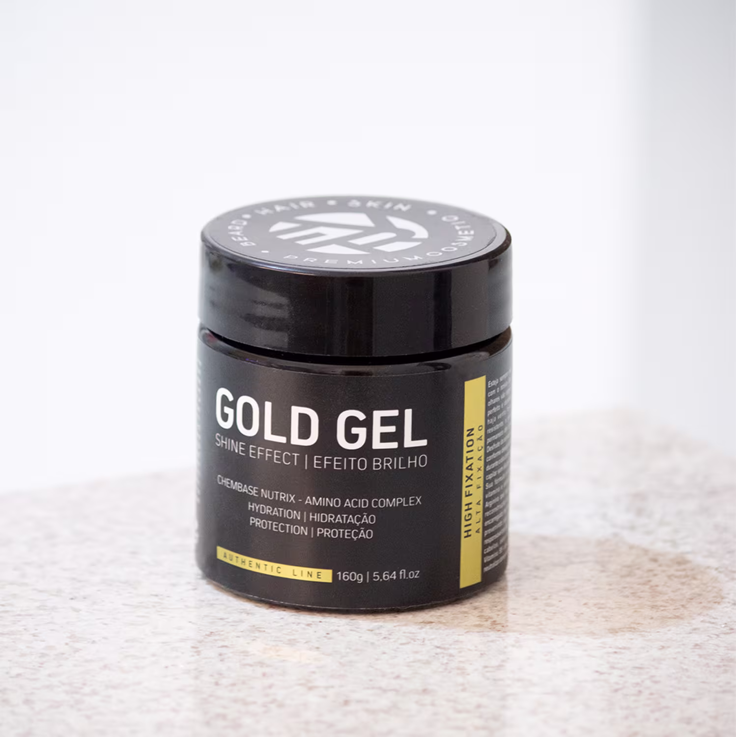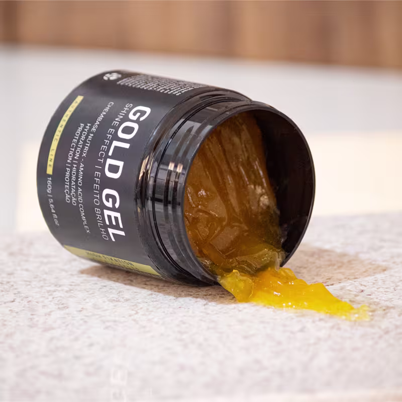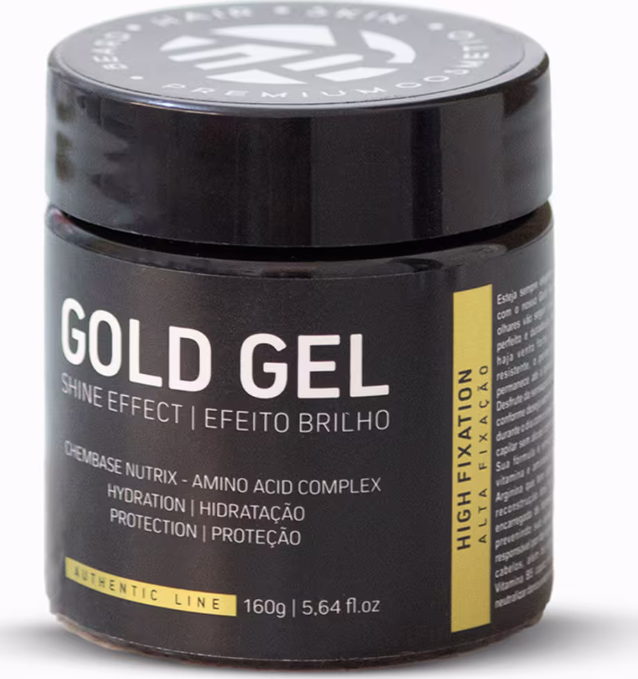 Esteja sempre elegante e alinhado com o nosso Gold Gel. Todos os olhares vão seguir o seu penteado perfeito e duradouro, mesmo que haja vento forte, a fixação é resistente, o penteado desejado permanece até à próxima lavagem. Desfrute da sensação de ter o cabelo conforme deseja sem ter de retocá-lo durante o dia com o nosso modelador capilar sem álcool com efeito brilho. Tem em sua fórmula as melhores matérias primas do mercado algumas como, arginina, serina, prolina, glicina, alanina, ácido glutâmico, ácido aspártico, treonina que sãos ricas em vitaminas e aminoácidos que hidratam seu cabelo e couro cabeludo formando uma película natural de proteção, reconstruindo e nutrindo os fios. Sua fragrância ambarada aromática marine extremamente marcante com notas de madeira torna esse produto único e irresistível.