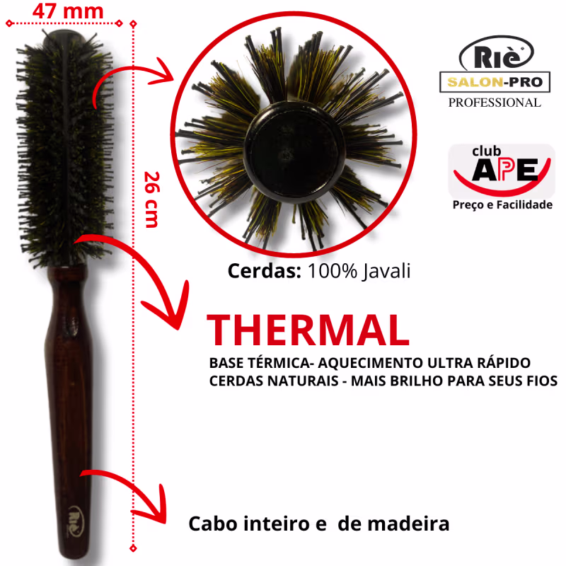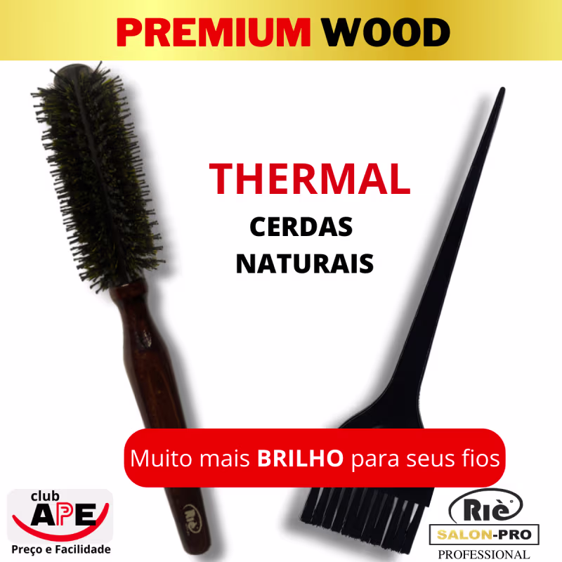 Escova de cabelo RIÈ salon-pro Premium Wood  permite um processo de secagem ou modelagem muito mais rápido e com proteção aos fios.A Escova RIÈ salon-pro Premium Wood dá um brilho incrível aos fios. As cerdas naturais permitem a liberação de micropartículas de óleos que distribuídos, deixam os cabelos muito mais saudáveis, macios e com brilho. Sua base térmica ajuda a acelerar o processo de secagem, além de proteger os fios.