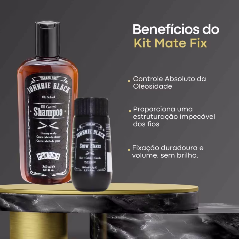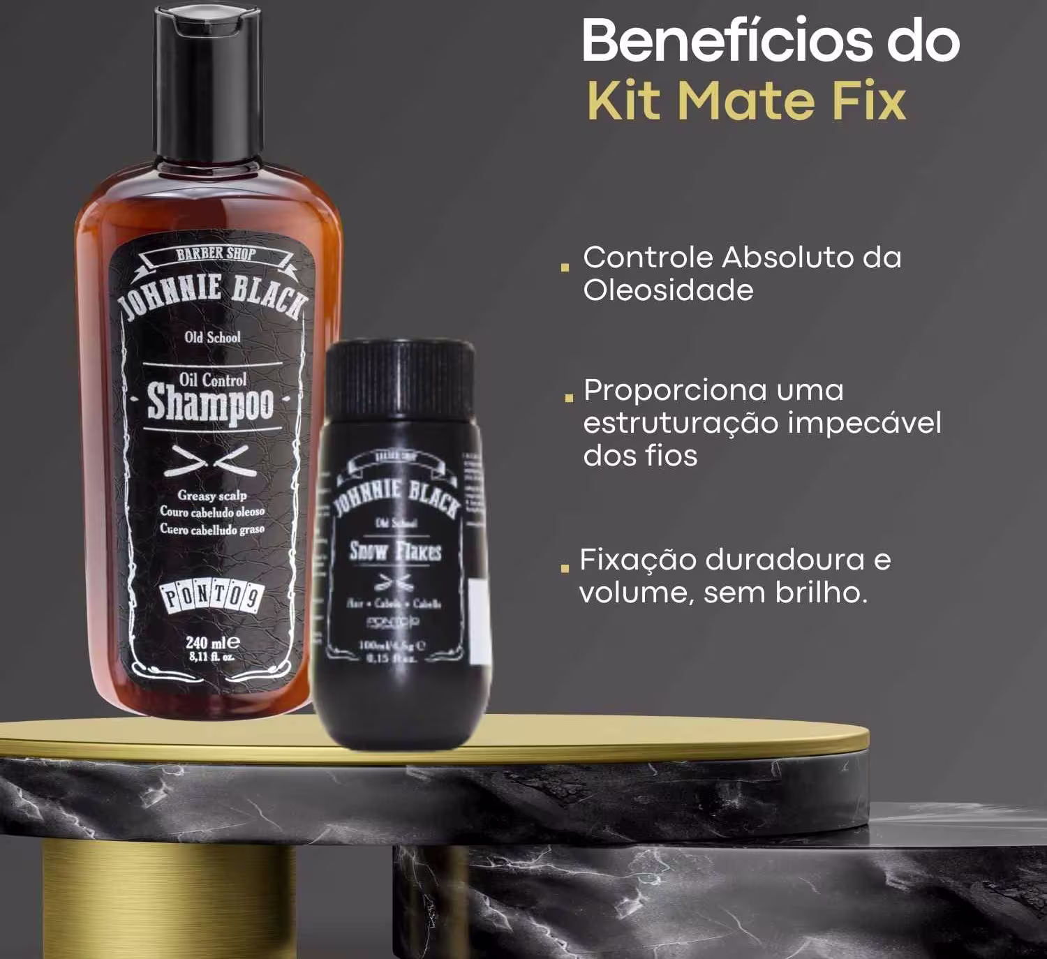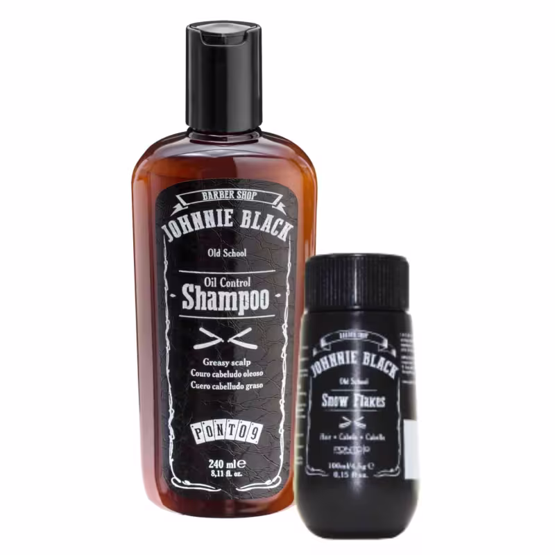 Shampoo Oil Control, o primeiro tratamento de alto resultado que age diretamente no combate à oleosidade do couro cabeludo.Pomada em Pó Johnnie Black Snow Flakes 4,5gr - Fixação Extraforte e Efeito Matte: Para a finalização dos fios, conte com a poderosa Pomada em Pó Snow Flakes. Essa inovadora pomada em pó proporciona uma textura única, garantindo volume e fixação forte, sem deixar brilho.