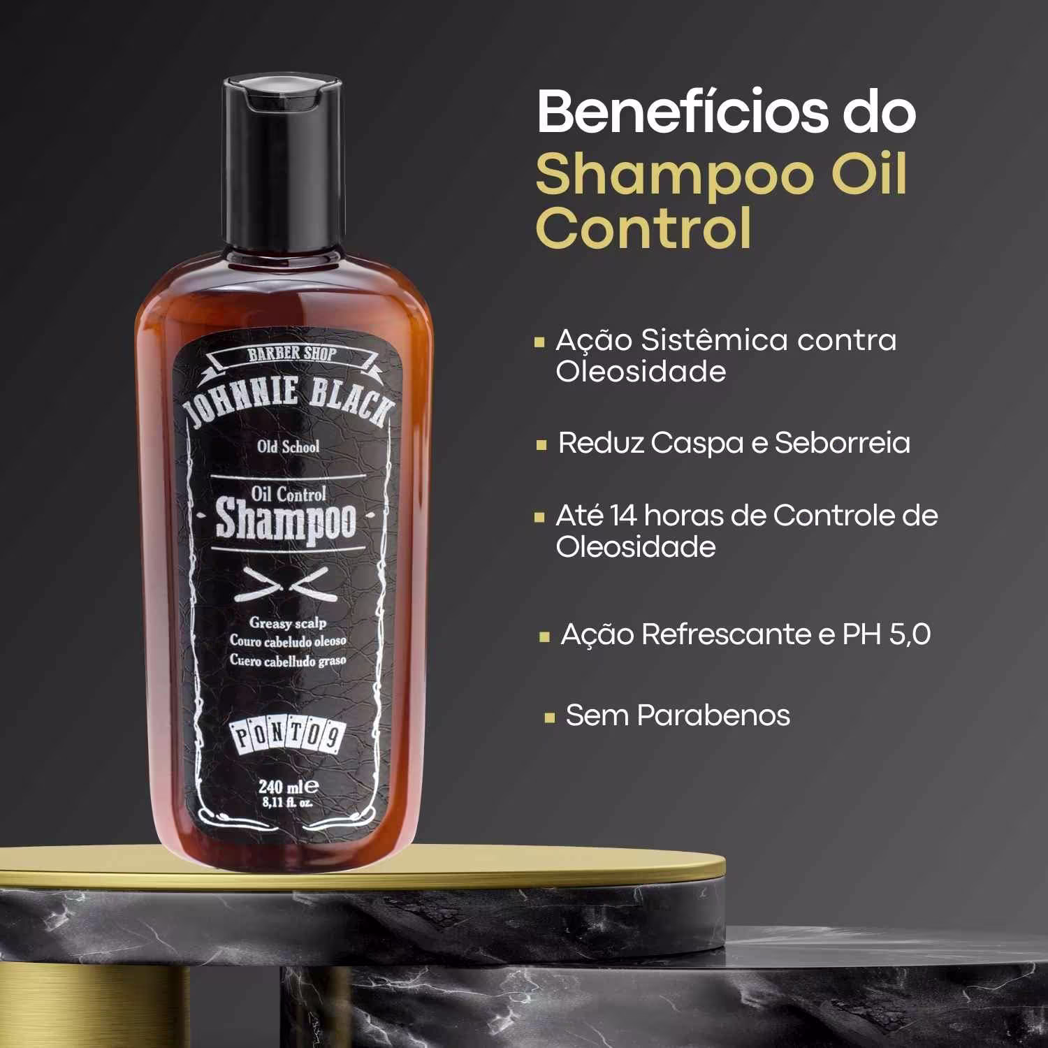 Johnnie Black Oil Control - Shampoo 240ml trata a oleosidade do couro cabeludo de dentro para fora, ou seja a ação inicia dentro do bulbo capilar atuando diretamente na glândula que produz a oleosidade.