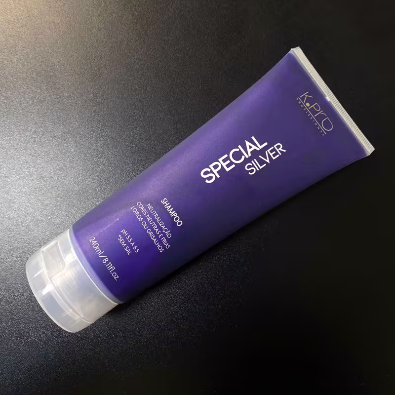 K.Pro Special Silver Ph 5.5 a 6.5 - Shampoo 240ml (2 unidades): limpeza balanceada. Sua neutralização média dos tons amarelados, possibilita a utilização diária em cabelo loiro muito amarelado e semanal nos pouco amarelado e grisalho. Ele é levemente ácido para auxiliar a manter e equilibrar a camada ácida natural, o selamento das cutículas e maior durabilidade dos tons naturais e frios.