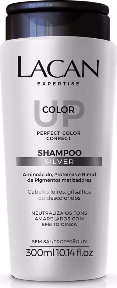 O Shampoo Silver Color UP Lacan, contém blend de pigmentos cinza que neutralizam tons amarelados e revela um efeito platinado e radiante por muito mais tempo, além de limpar sem agredir ou ressecar os fios. Sua fórmula rica em Aminoácidos, restaura a elasticidade e promove resistência. Com Filtro UV, protege os cabelos da exposição diária ao sol.
