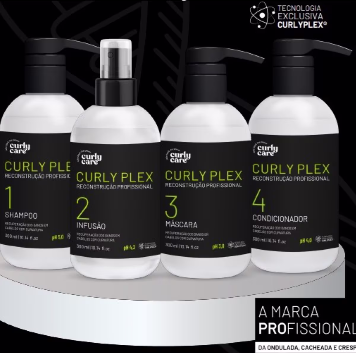 CurlyPlex é uma tecnologia com ação reticulante baseada na associação sinérgica do Ácido Itacônico, Arginina, Pró-Vitamina B5 (pantenol), Polissacarídeos (extraídos das sementes da linhaça e da chia), e um blend de aminoácidos essenciais bio-reparadores.