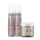 Desperte a textura dos seus cabelos com o Kit Wella EIMI. O Sugar Lift traz volume, o Perfect Setting cria definição e o Bold Move oferece textura única.