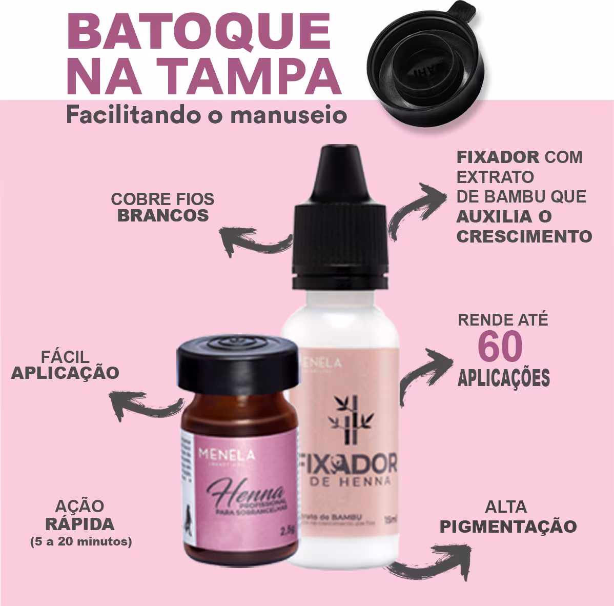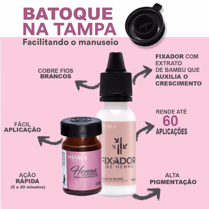 - Para melhor conservação da qualidade do produto, mantenha o frasco da Henna Menela com a tampa pressionada, evitando assim a entrada de ar/ umidade e sua oxidação.