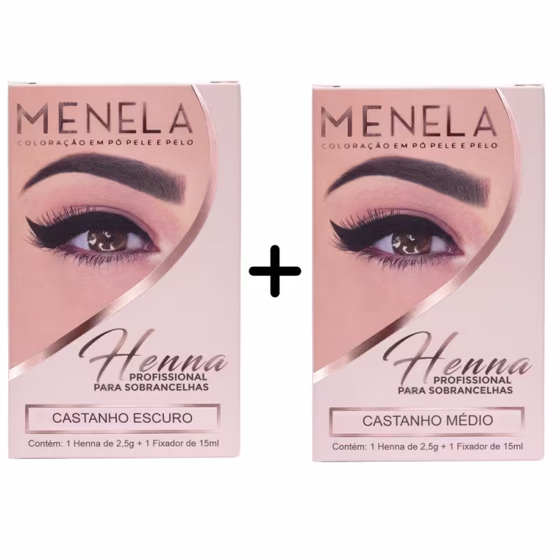 Combo Henna Para Sobrancelhas Menela 2,5g - Castanho Escuro e Castanho Médio Ver mais ❯