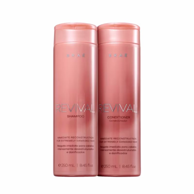 Kit BRAÉ Revival Shampoo, Condicionado, Mascara Capilar e Gorgeous Shine Oil<br> <br>Linha Revival Braé, é uma linha Home Care foi desenvolvida para recuperar fios altamente desestruturados e fragilizados. Sua formulação inovadora, através de um poderoso Blend de vitaminas, cria delicadamente uma nova estrutura nas áreas mais danificadas dos fios, deixando os cabelos mais fortes e saudáveis.<br> <br>O kit Contém:<br> <br>01- Shampoo BRAÉ Revival - 250ml;<br>01- Condicionador BRAÉ Revival - 250ml;<br>01- Mascara Capilar Reconstrução BRAÉ Revival - 200g<br>01- Gorgeous Shine Oil BRAÉ Revival – 60ml<br>01- Ampola Power Dose BRAÉ Revival – Tratamento Capilar - 13ml<br> <br>Sobre o produto: <br>Shampoo BRAÉ Revival: limpa e ajuda na recuperação dos fios desestruturados.<br> <br>Condicionador BRAÉ Revival: desembaraça e recupera a fibra capilar para trazer força e beleza aos fios.<br> <br>Mascara Capilar BRAÉ Revival: recupera e protege a fibra capilar para que ela fique forte, brilhante e hidratada.<br> <br>Gorgeous Shine Oil BRAÉ Revival: Óleo para cabelos danificados e fragilizados. Atua na nutrição e fortalece das pontas, além de devolver a vitalidade aos fios. Com o uso contínuo auxilia na prevenir pontas duplas.<br> <br>Ampola BRAÉ Revival: É uma ampola ultra concentrada com ação instantânea indicado para cabelos danificados e desestruturados, promove ação reparadora e nutritiva, deixando os cabelos leves e saudáveis. <br> <br> <br>Modo de usar:<br>Aplique o shampoo nos cabelos molhados e massageie o couro cabeludo até formar espuma. Enxágue. Repita o procedimento se necessário.<br> <br>Com os cabelos úmidos, aplique enluvando mecha a mecha. Deixe Agir por 3 minutos e enxágue.<br> <br>Para potencializar o tratamento e obter mais reparação e reconstrução, adicione 2ml da Ampola Power Dose para cada 5g da Máscara Revival. Deixar agir de 10 a 20 minutos.<br> <br>Após a lavagem, distribua a máscara mecha a mecha, começando pelas pontas. Massageie suavemente até chegar próximo à raiz. Deixe agir durante 25 minutos. Enxágue. Finalize como desejar.<br> <br>Espalhe o condicionador sobre os fios úmidos depois de usar o shampoo. Comece pelas pontas, massageie suavemente e deslize os fios entre os dedos até que estejam desembaraçados. Deixe agir por alguns minutos e enxágue.<br> <br>Aplique umas gotas do óleo na palma das mãos. Espalhe no comprimento dos cabelos até completar a absorção. Finalize como desejar.<br> <br>Resultado<br>Cabelo limpo, desembaraço, fios recuperados, saudáveis e com um brilho intenso.<br> <br>Cuidados/Restrições<br>Sempre prefira utilizar uma espátula para retirar o produto de dentro do pote, para garantir a proteção e eficiência do produto.<br> <br>Evite o contato com os olhos. Caso isso aconteça, enxágue com água em abundância. Havendo irritação, suspender o uso e procurar orientação médica. Não ingerir. Manter fora do alcance de crianças. Uso externo.<br> <br>