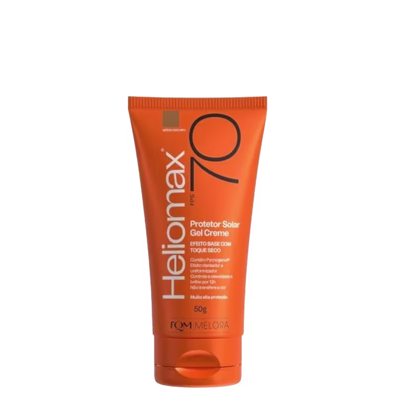 Heliomax FPS 70 é um protetor solar em gel creme com cor para uso diário. Oferece muito alta proteção contra queimaduras solares e protege a pele contra danos causados pela exposição excessiva ao sol e luzes artificiais, com controle de oleosidade e brilho por 12 horas.