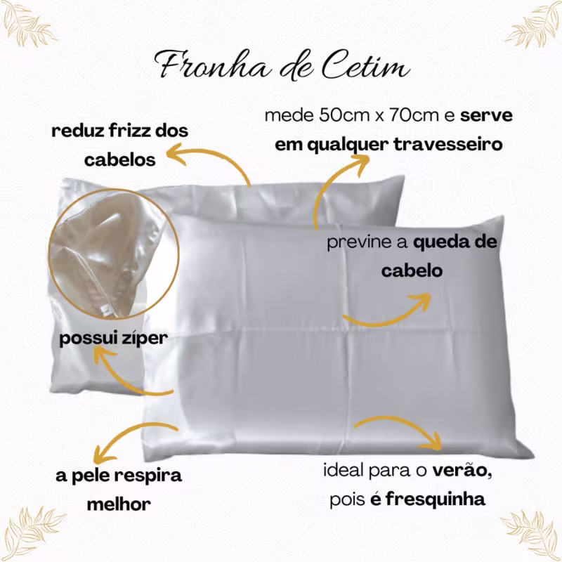 A FRONHA DE CETIM CHAMPAGNE AROMÁ mede 50 cm x 70 cm e tem diversos benefícios: