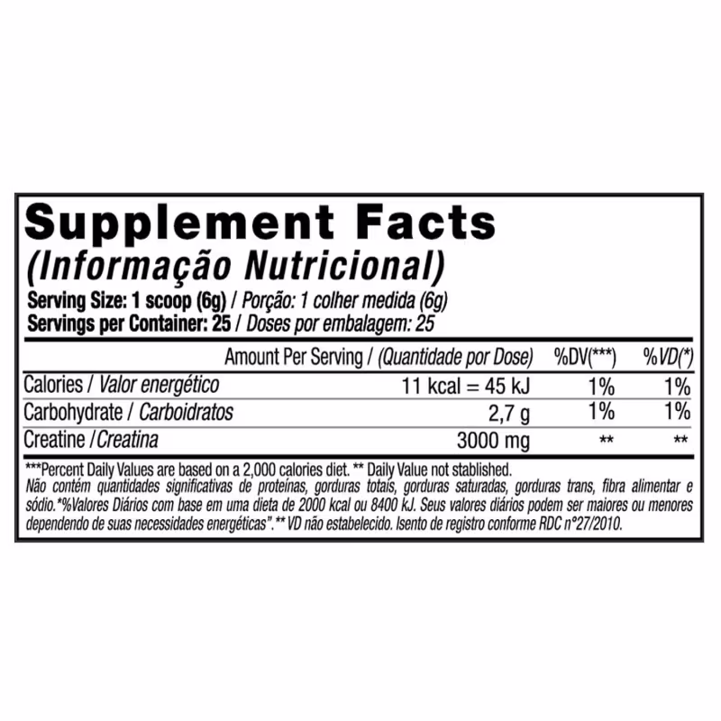 Black Skull Creatine Turbo é um produto formulado com creatina mono-hidratada em conjunto com o carboidrado maltodextrina. Cada dose possui apenas 12 calorias e entrega 3g da substância por dose. É energia pura e, consequentemente, apoio para seu processo de ganho de massa!